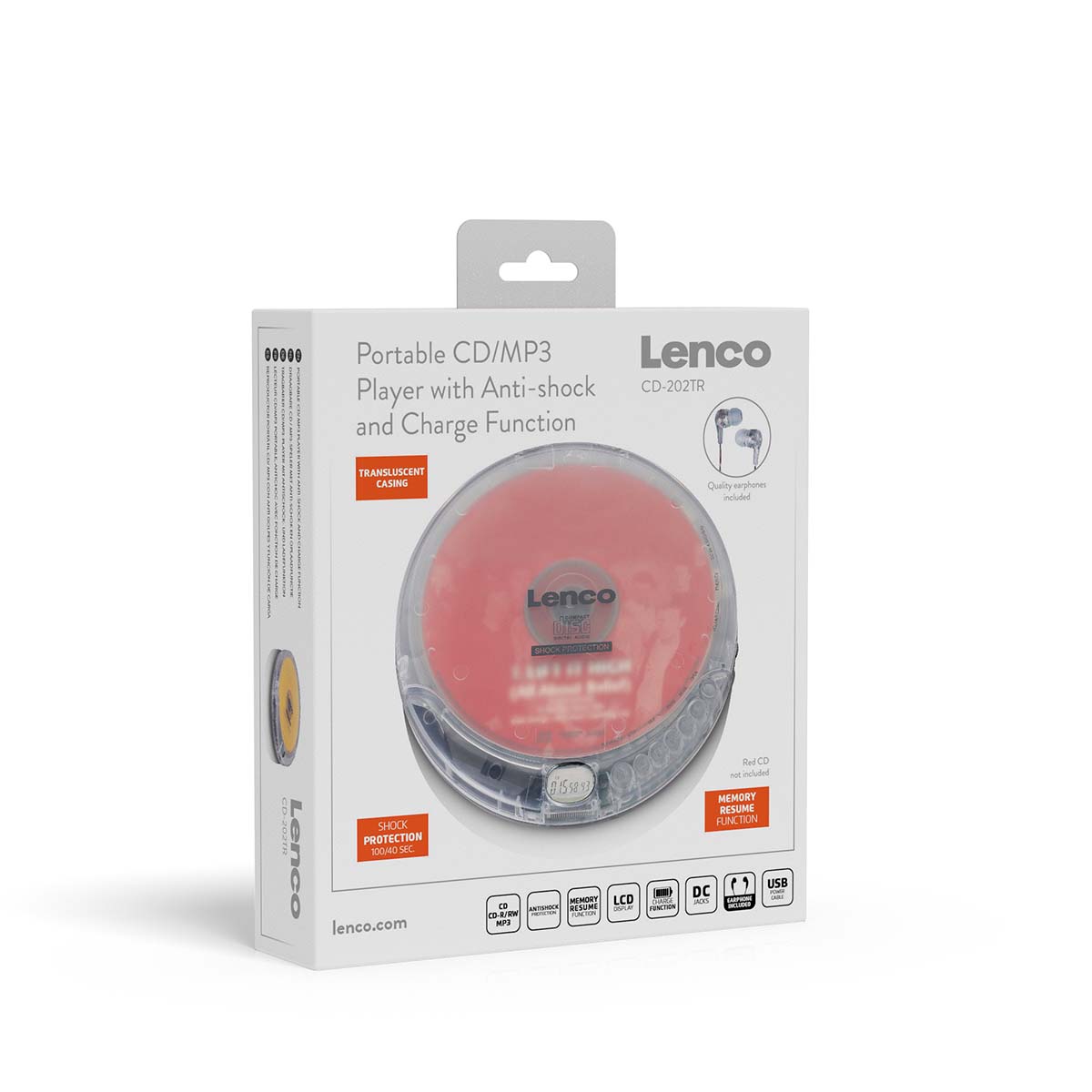 De Lenco CD-202 is een volledig draagbare cd-speler met bescherming tegen schokken.