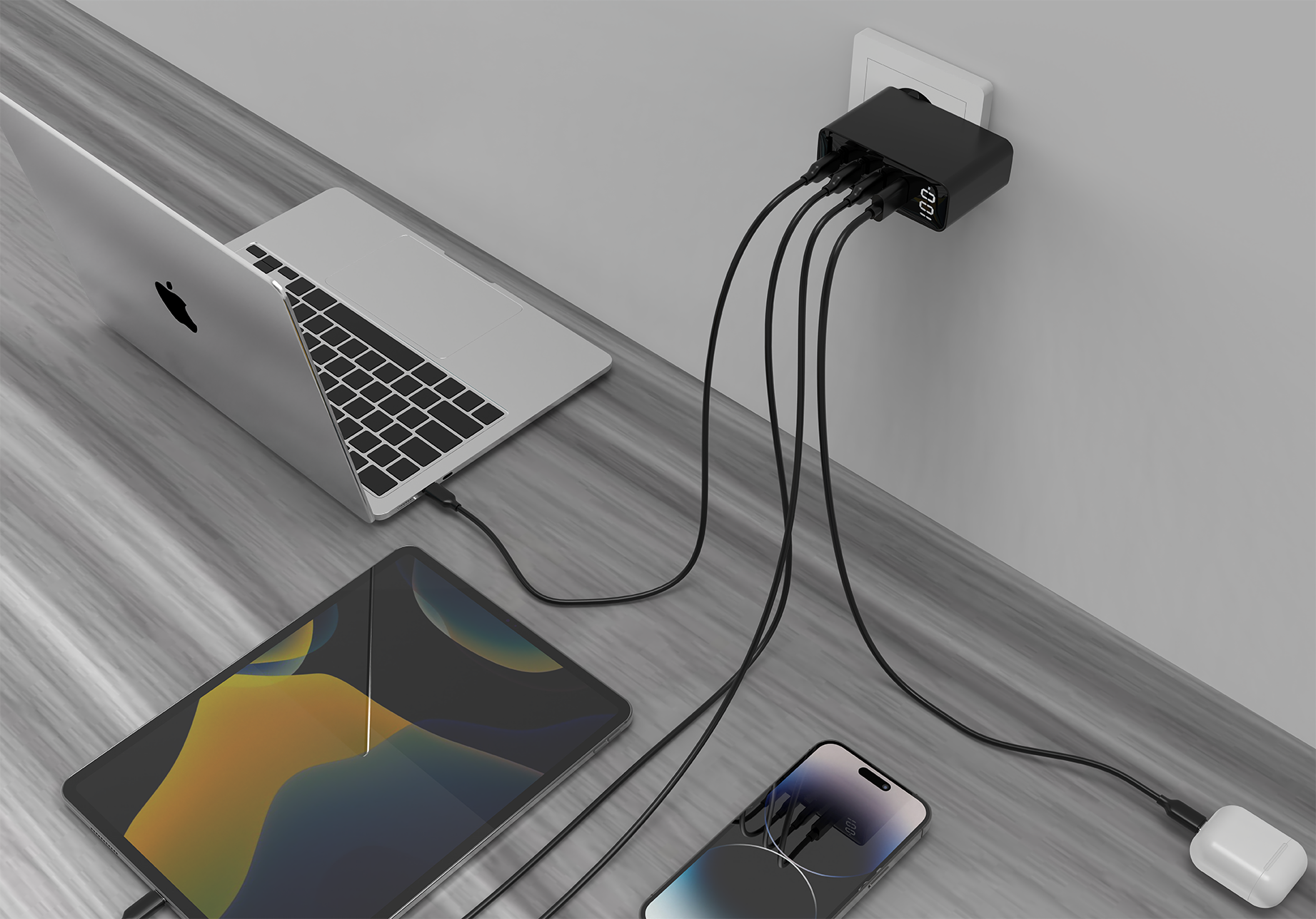 USB 4-poorts snellader van 100 W: ondersteunt zowel QC 3.0- als PowerDelivery (PD) snellaad-protocol